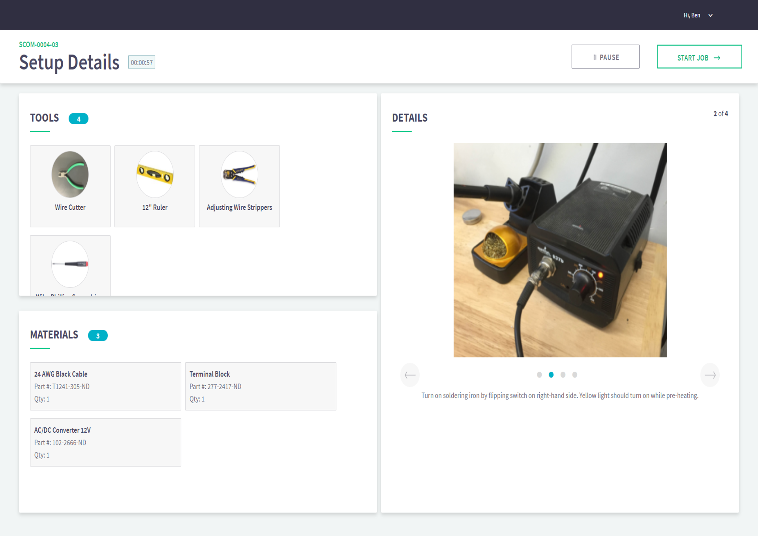 In Compass, the production floor application, an essential feature is the ability to auto-compile all the Tools and Materials used in a Work Instruction. These compiled tools and materials are then displayed in the Setup Details page for easy reference and accessibility.