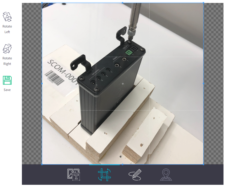 Below the Step Image, you will notice 4 icons. Clicking on the 2nd icon from the left will switch the tool to Crop and Rotate mode. Once engaged, 3 new icons will appear on the left side of the Step Image. You can use Rotate Left or Right to rotate the image by 90 degrees. To crop the image, simply click on any perimeter of the image and move it to the desired location. Remember to press the Save icon on the left side to save your changes.