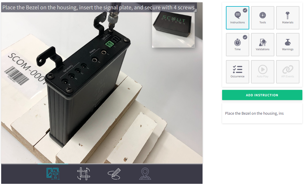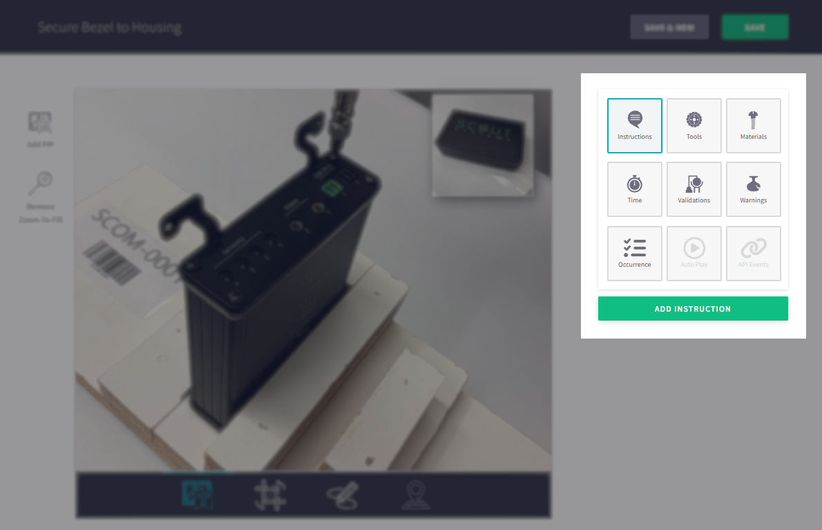 Inside the Step Editor, to the right of the Step Image, you will find 9 tiles. Each tile represents additional methods to enhance your Digital Work Instructions further. These tiles provide a range of options and tools that enable you to create comprehensive and visually engaging instructions, ensuring a smooth and efficient workflow on the production floor.