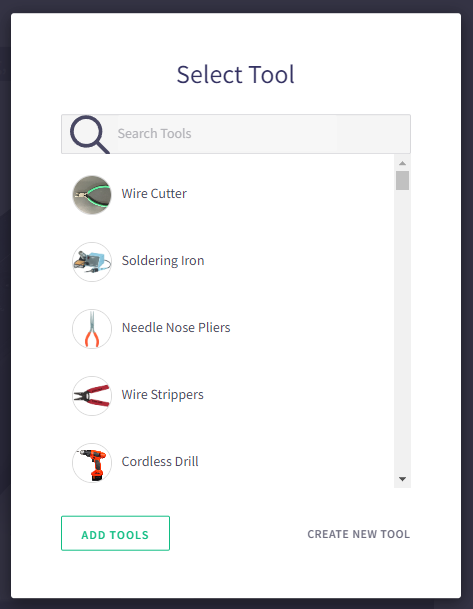 If you have existing Tools in your library, they will appear on the Select Tool Screen. You can simply click on the Tools needed for this Step and press "ADD TOOLS" to embed them into the Step.